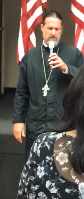 | Father Josiah Trenham of the St. Andrew Orthodox Church in Riverside gave the opening prayer. |