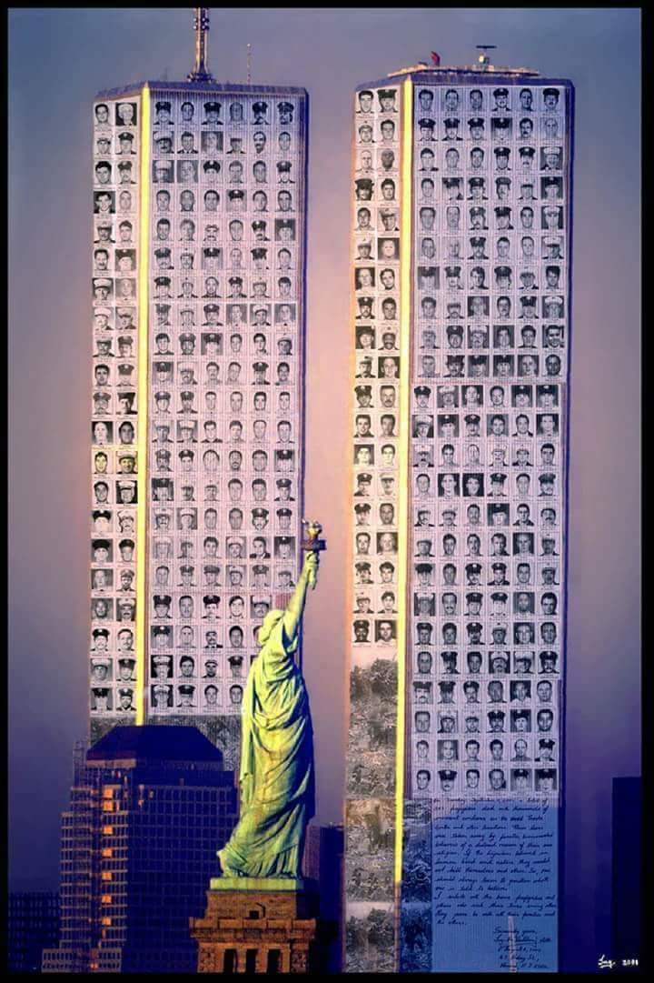In 2002 my wife and I visited Ground Zero in New York City. I bought a hat with an image of the twin towers, and the words “Never Forget,” on it. A small painting with the firemen hoisting the American Flag was on sale nearby, and I bought that too.