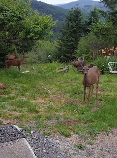 My fortress of solitude up in the Oregon forest is a game room attached to the house my father left to me many years ago when he passed on. A pool table, pinball machine, and CD player are my companions as I sit at the bar and type these words. I am listening to Kutless, a Christian rock band, as I type. My wife is across the garage on the other side of the house in the living room talking on the phone with her sister. I made salsa earlier to accompany our supper. I plan to make tacos, rice, and mashed pinto beans with just the right seasoning. Before we have dinner, however, I have to pause to look out the window. My friends are back. A number of deer are here, and the old gal is looking at me, asking, it seems, “Do you have any apples for me today?”
