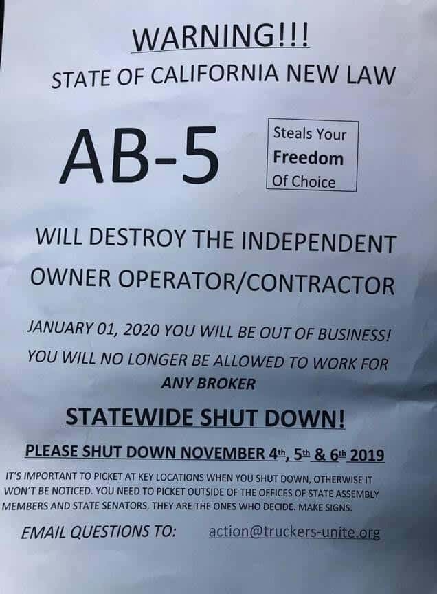 Now, we have AB-5, the new gig-law, which is designed to “reduce worker misclassification — workers being wrongly classified as ‘independent contractors’ rather than employees, which erodes basic worker protections like the minimum wage, paid sick days and health insurance benefits.”