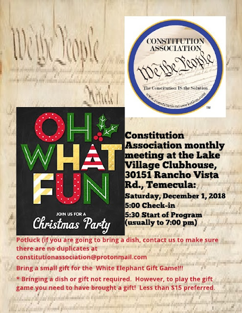 Join us for the festivities Saturday Night, December 1. Check-in 5:00 pm, fun starts at 5:30 pm. Saint Nicholas will be on the premises (and if you bring a kid, bring a gift for St. Nick to give the child). Bring a wrapped gift for the White Elephant Game. Bring some cash for the opportunity drawing, we are raffling off seven wrapped gifts, and one is worth $50 (literally). Bring your appetite. Food will be available. I am bringing my grandma’s cheese potatoes. Bring a dish if you wish. Coffee, Lemonade and water will be available too!!! We will be next to the lake . . . Lake Village Clubhouse, 30151 Rancho Vista Road, Temecula.