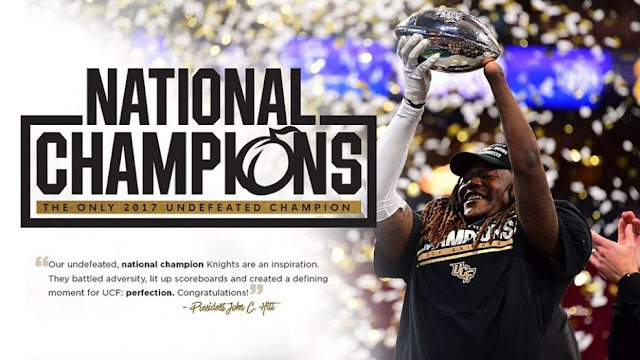 I feel like it’s the Boise State thing, all over again. Remember that? They had some great one-loss years a decade ago, and went undefeated in 2006 (and beat Oklahoma in the Fiesta Bowl) and 2009 (beating undefeated TCU in the Fiesta Bowl); but, like UCF, weren’t given a chance for anything bigger than their own conference championship, or a deserved ranking. They were ranked #5 and #4 respectively, after all of the bowl games and all of the backroom discussions settled, during 2006 and 2009, behind teams that had losses (but stronger strengths of schedule).