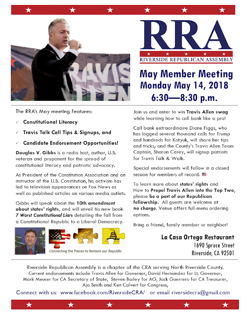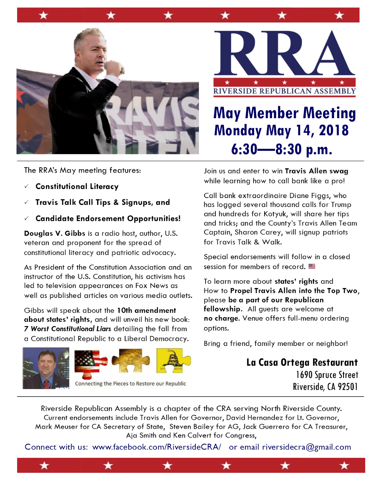 Riverside Republican Assembly, La Casa Ortega Restaurant, 1690 Spruce Street,
