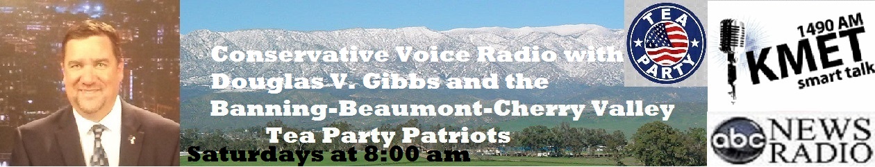 Conservative Voice Radio is hosted by Douglas V. Gibbs, with members of the Banning-Beaumont-Cherry Valley Tea Party (Glenn, Jan and Diane) on KMET 1490-AM every Saturday at 8:00 am Pacific Time.