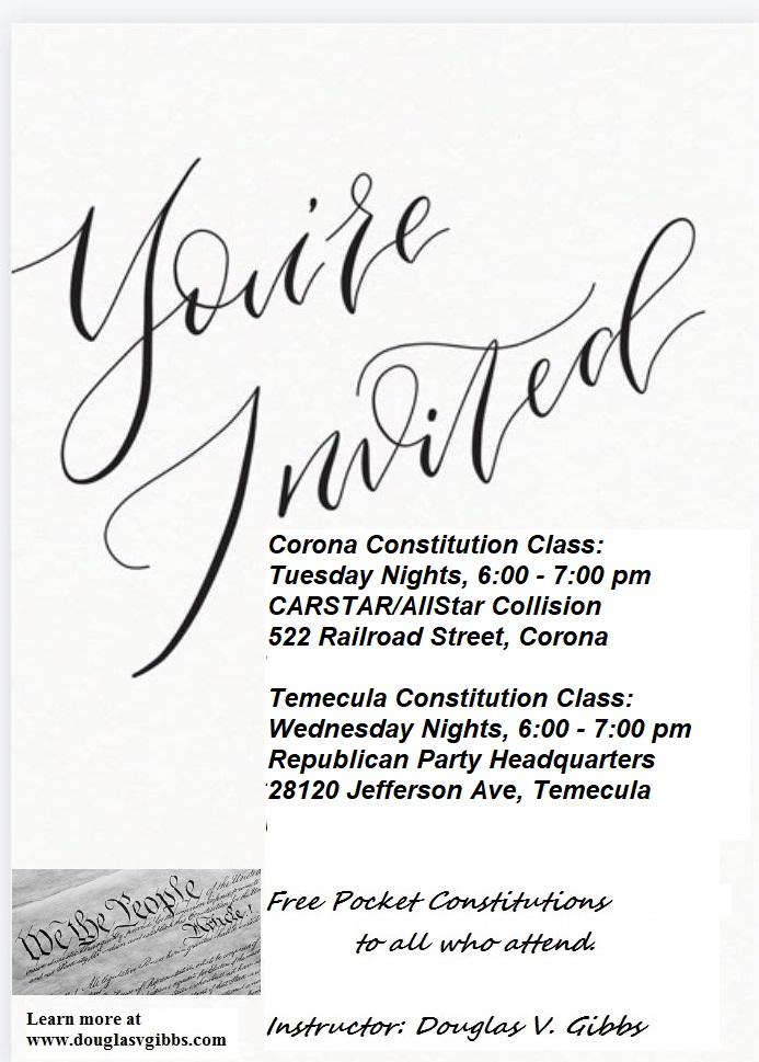Tonight the Corona Constitution Class will resume meeting at CARSTAR/AllStar Collision.