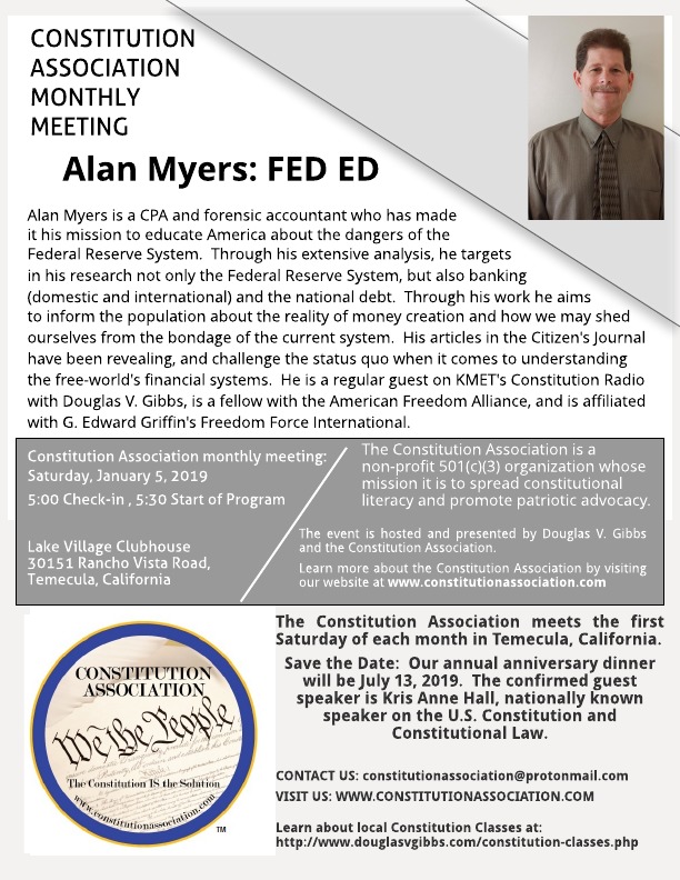 Coming up this Saturday, we will be meeting in Temecula to discuss the monetary system and the Federal Reserve.