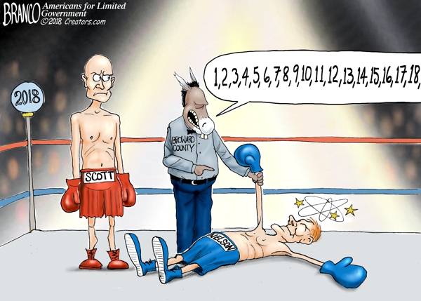 There appears to be no end to the counting of ballots, meaning, It ain’t over til the Democrat wins in Florida’s Broward County. Political Cartoon by A.F. Branco ©2018.