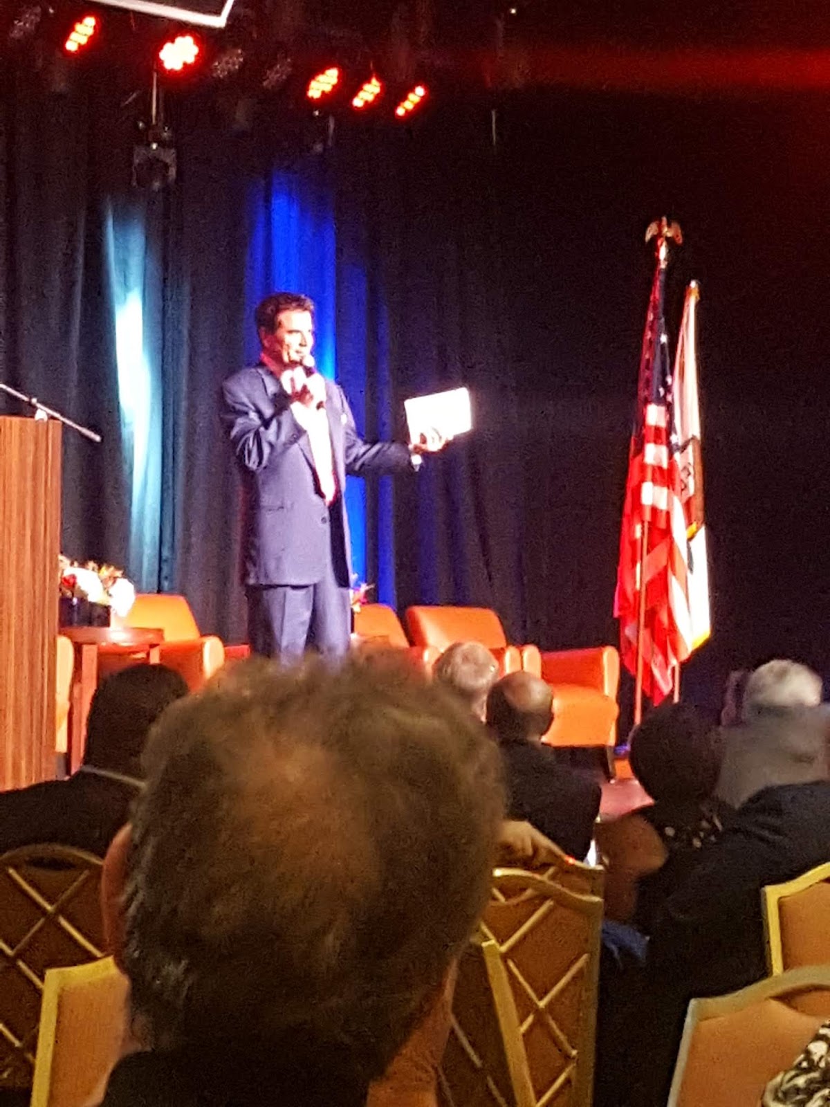 Graham Ledger is a television host on One America News Network. His show is called The Daily Ledger. He was the Riverside County Republican Party Liberty Dinner’s keynote speaker on Saturday night at the Casino Morongo Conference Center.