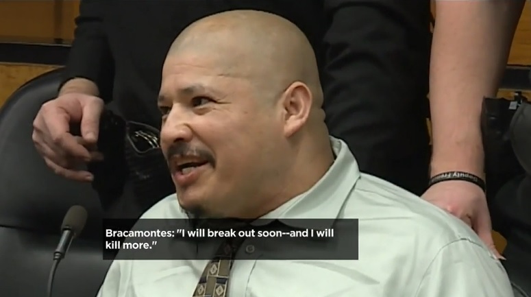 During the trial, the judge decided to order the jury out of the room when Bracamontes decided to go on a verbal tirade where he not only admitted to murdering the peace officers, and that there’s no need for a trial, but that (as he smiled and smirked) “I killed f***ing cops. They’re f***ing dead. I don’t f***ing regret that … I will break out soon and I will kill more.”