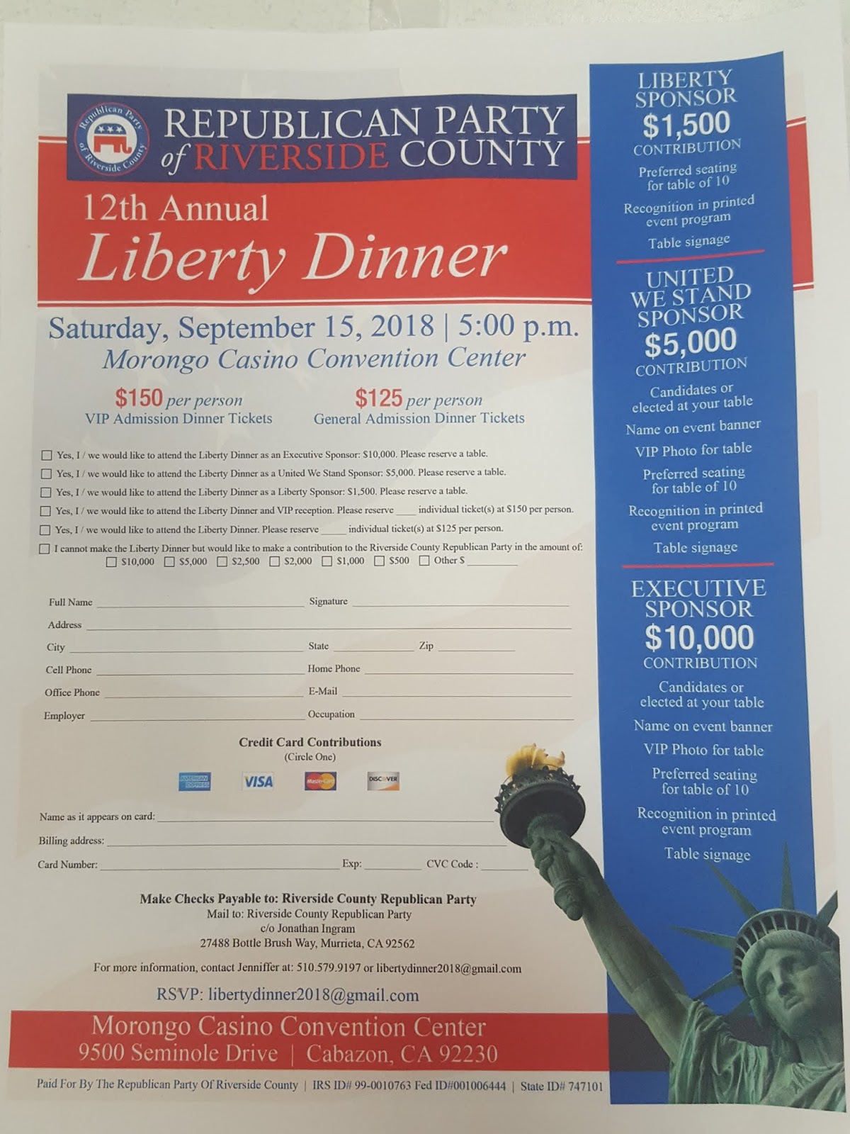 GET TICKETS HERE: https://www.eventbrite.com/e/republican-party-of-riverside-county-12th-annual-liberty-dinner-tickets-46108171783