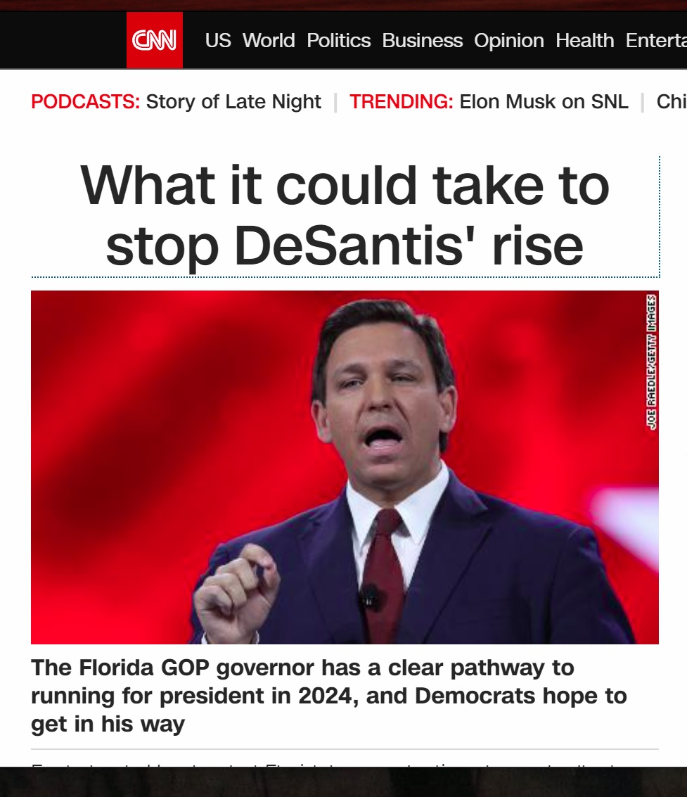 The plan by the Democrats is to stop him before 2024’s possible presidential bid.  In other words, if they can stop him in the 2022 gubernatorial election in Florida it may serve as a means of cutting short the governor’s surge.
