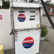 Tucked on a lot next to a small general market was a single pump, old style, with spinning reels rather than a digital or computer face. The tank was also unique. Rather than being underground, it was on the surface, behind the pump, painted white.