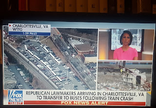 A dump truck sat on the tracks in Virginia as a train full of Republican Congressmen heading to a policy retreat in West Virginia came barreling down the tracks.  The train slammed into the truck, ultimately killing the driver, and dislodging the front of the locomotive from the tracks, and injuring a number of the lawmakers.