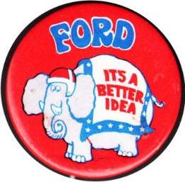 | Here’s another Nixon pin button with upside down stars, but this time the colors of the elephant are consistent with more recent versions. |