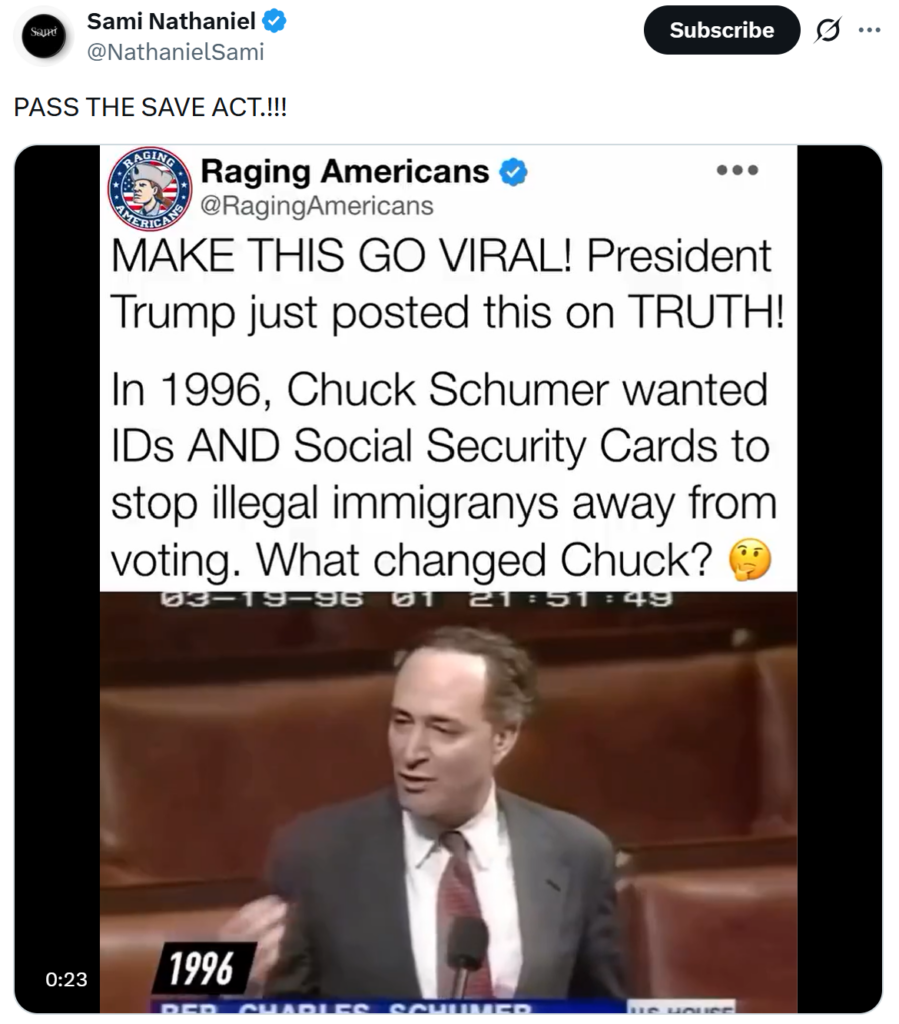 PASS THE SAVE ACT.!!! pic.twitter.com/XaBfwCJvZ9— Sami Nathaniel (@NathanielSami) February 17, 2026