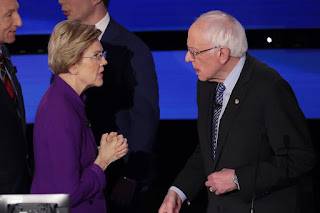 even though the base of the party has chased him over to the far left fringe. Like in 2016, the ruling establishment has decided that Bernie must not be the candidate. Elizabeth Warren agrees, and her campaign is not pulling forward as she’d hoped. So, to boost her numbers, her knives are out for Bernie, as well.