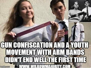 Meanwhile, after the Parkland, Florida shooting, we have the Democrat Youth marching for the leftists, demanding gun confiscation, while wearing arm bands.